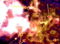 На снимках -спутник-астероид ISON , желтые стрелки -приемная камера.