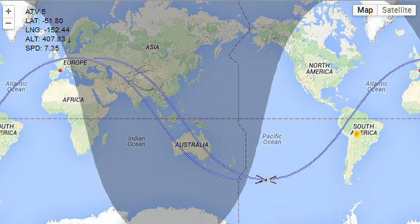 LOSS OF SIGNAL #LOS (https://twitter.com/hashtag/LOS?src=hash) Contact with #ATV5 (https://twitter.com/hashtag/ATV5?src=hash) Georges Lemaître lost, as expected. It's all over #BigDive (https://twitter.com/hashtag/BigDive?src=hash)