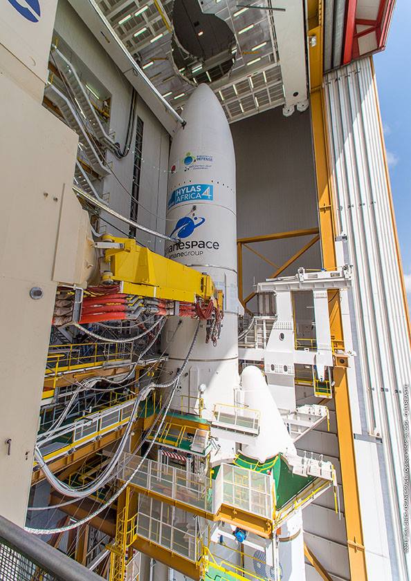 Nice shot of #Ariane5 (https://twitter.com/hashtag/Ariane5?src=hash) #VA242 (https://twitter.com/hashtag/VA242?src=hash) passenger HYLAS-4 inside S5C at #CSG (https://twitter.com/hashtag/CSG?src=hash)