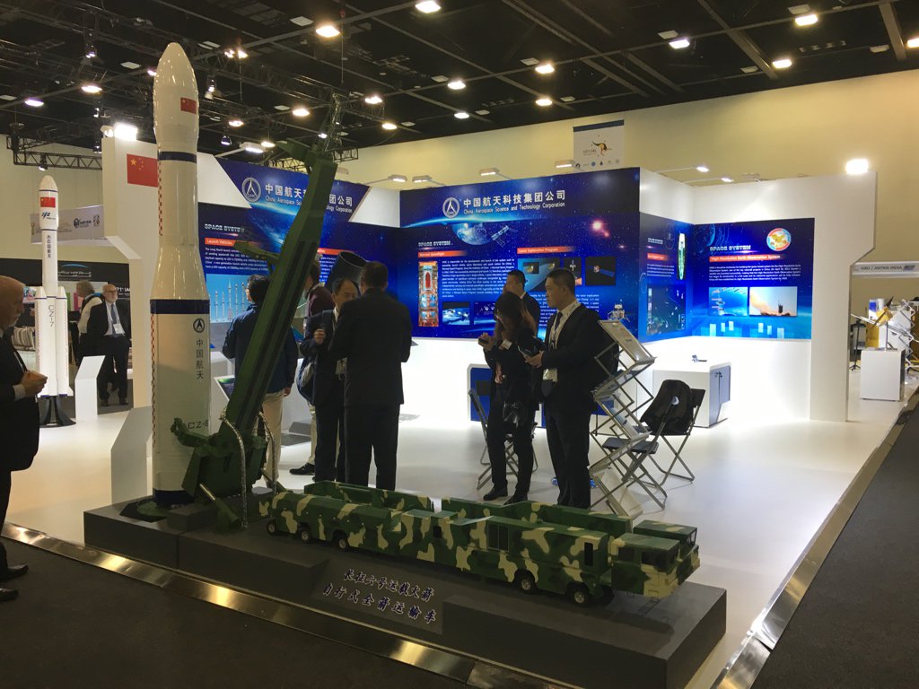 My favorite from the exhibit hall: the CAST booth has a model of a Long March 6 small launcher--with a camouflaged transporter/erector.