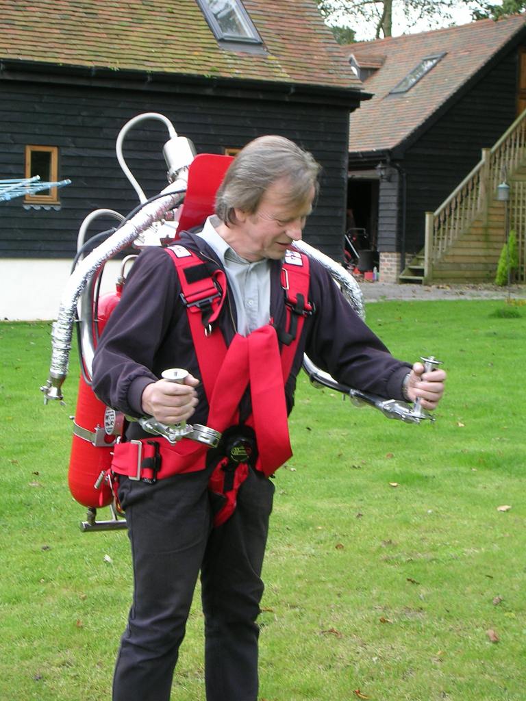 ЦитироватьThis flying jetpack is an incredible machine that can take off and land vertically and fly at horizontal speeds of up to 50 MPH! It will hover and fly in virtually any direction by the simple flight stick controls that the user operates. It can carry a total weight of a 200 lb pilot. It carries 3 gallons of fuel and can stay in the air for up to an hour before refueling! Constructed from space-age composite materials. This device is mounted on your back and has no wings or helicopter blades. And yes this is for REAL!