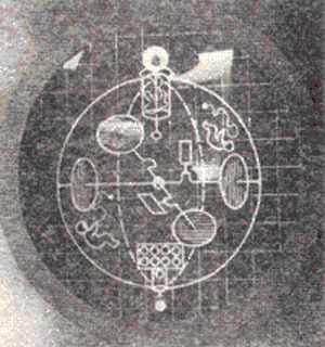 Панно (?) выполнено по рисунку Циолковского в его работе "Свободное пространство" 1883 года: