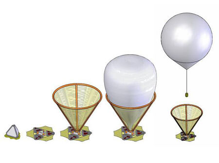 ИМХО, это даже сложнее посадки. Посадка может быть полужесткой или даже пенетратором (правда не один пока не сел), а с аэростатом над чтобы быстренько-быстренько все надулось и скорость еще как-то погасить.... Не, это сложновато :)