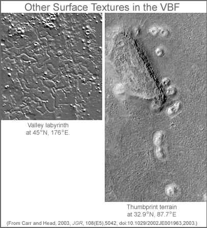такие же аккуратные кратеры, как в замерзшем море на равнине Элизиум. И оценки по времени - 20 млн лет здесь и 5 млн лет там - не так уж сильно различаются. Правда, здесь лед не расколот на льдины. Но льдины на Элизиуме от повторного таяния, каковое не обязано быть везде.