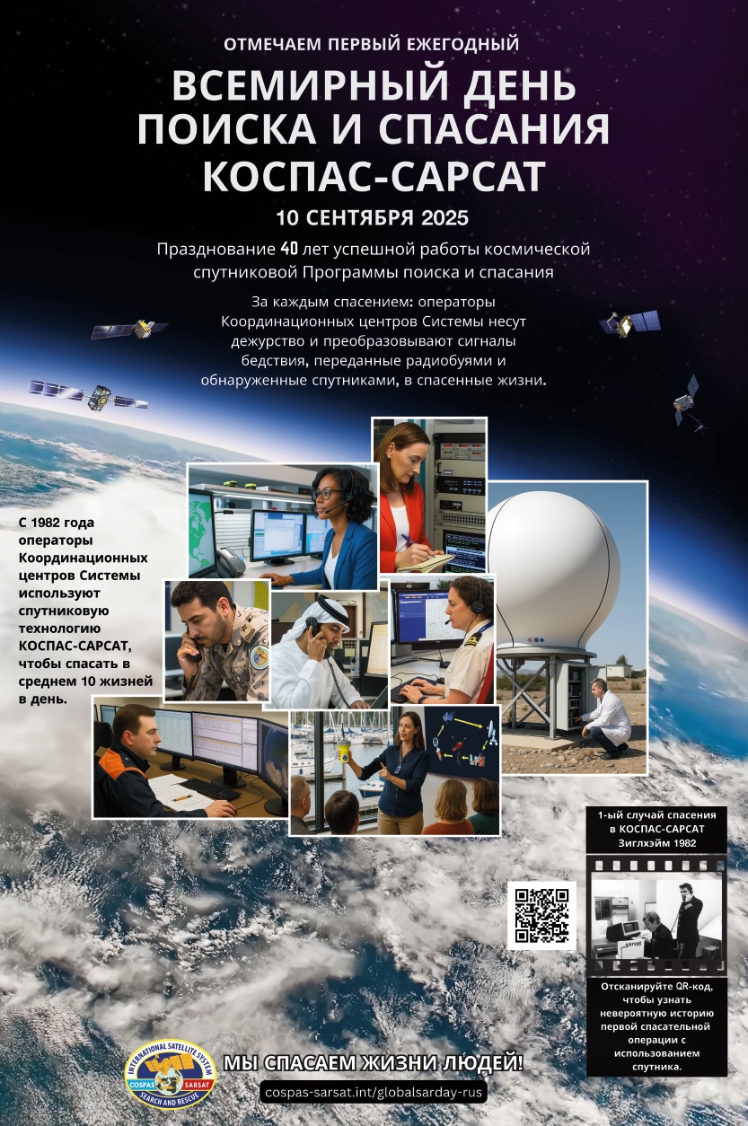 10 сентября 2025 года впервые отмечается Всемирный день поиска и спасания КОСПАС-САРСАТ