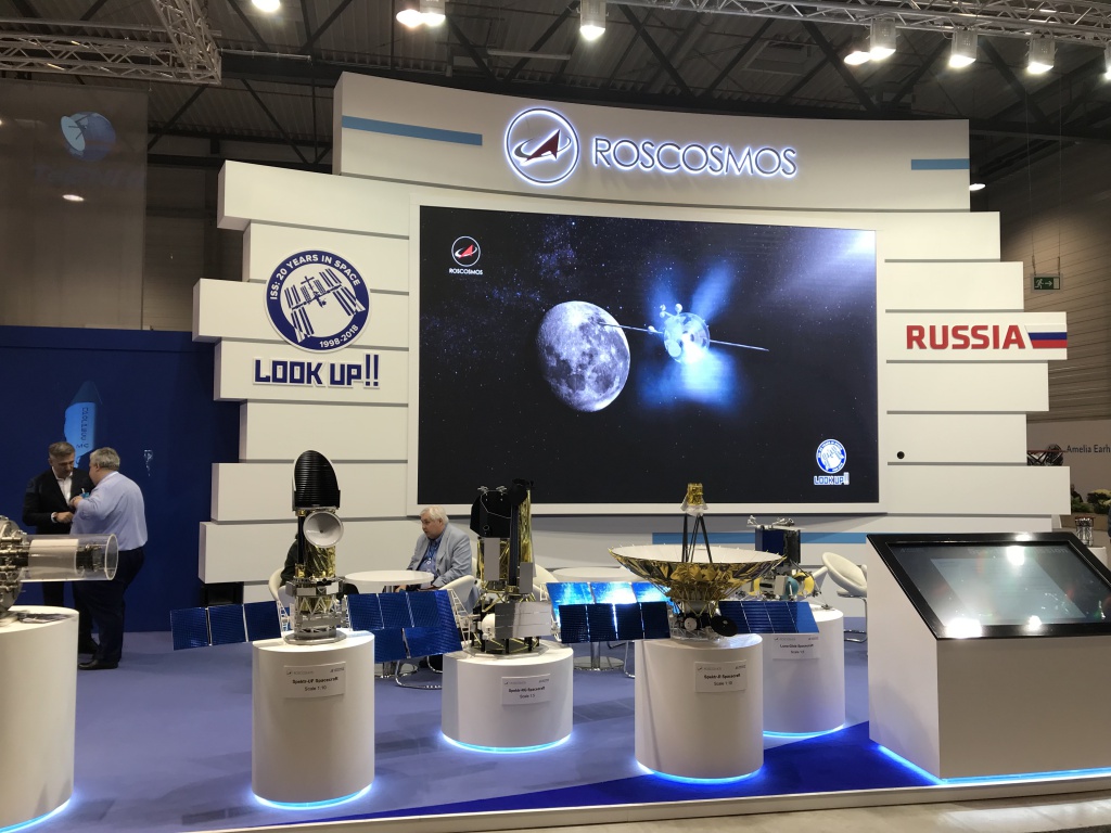 Российский стенд размещен в павильоне №4, он объединил под своей крышей экспозиции ведущих предприятий отрасли, включая АО "НПО им. С.А.Лавочкина", ФГУП "ЦЭНКИ", ФГУП ЦНИИмаш и АО "НПО Энергомаш им. академика В. П. Глушко". На стенде представлены макеты двигателей для существующих и перспективных ракет-носителей, макеты научных обсерваторий, космических аппаратов, в частности, перспективной программы изучения Луны - "Луна-25". Здесь можно увидеть макет пускового стола для семейства ракет-носителей "Ангара" на космодроме Восточный, электровакуумную космическую печь "Полизон-М", предназначенную для проведения физических исследований и экспериментов в области космического материаловедения, а также другие новейшие разработки в области космонавтики.