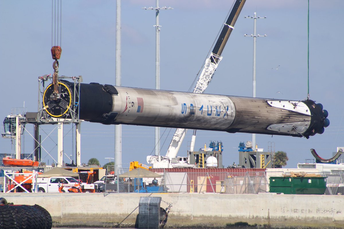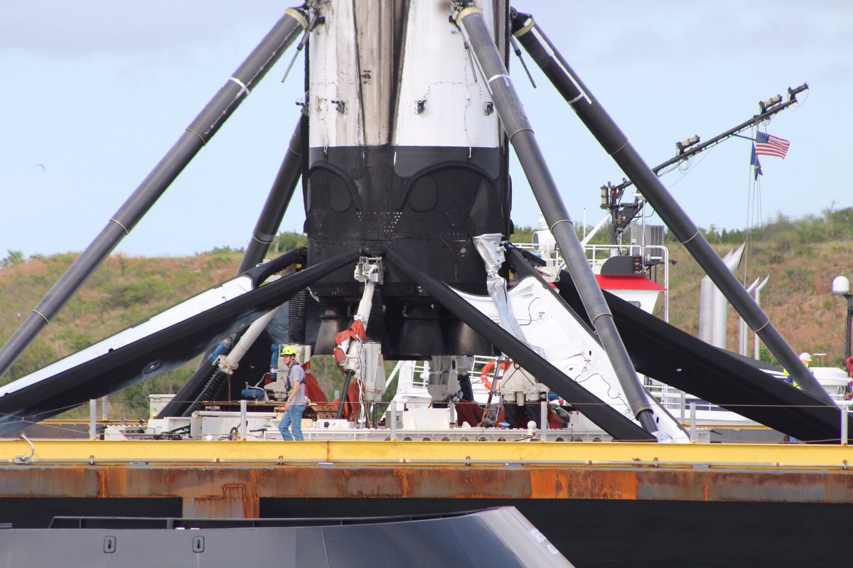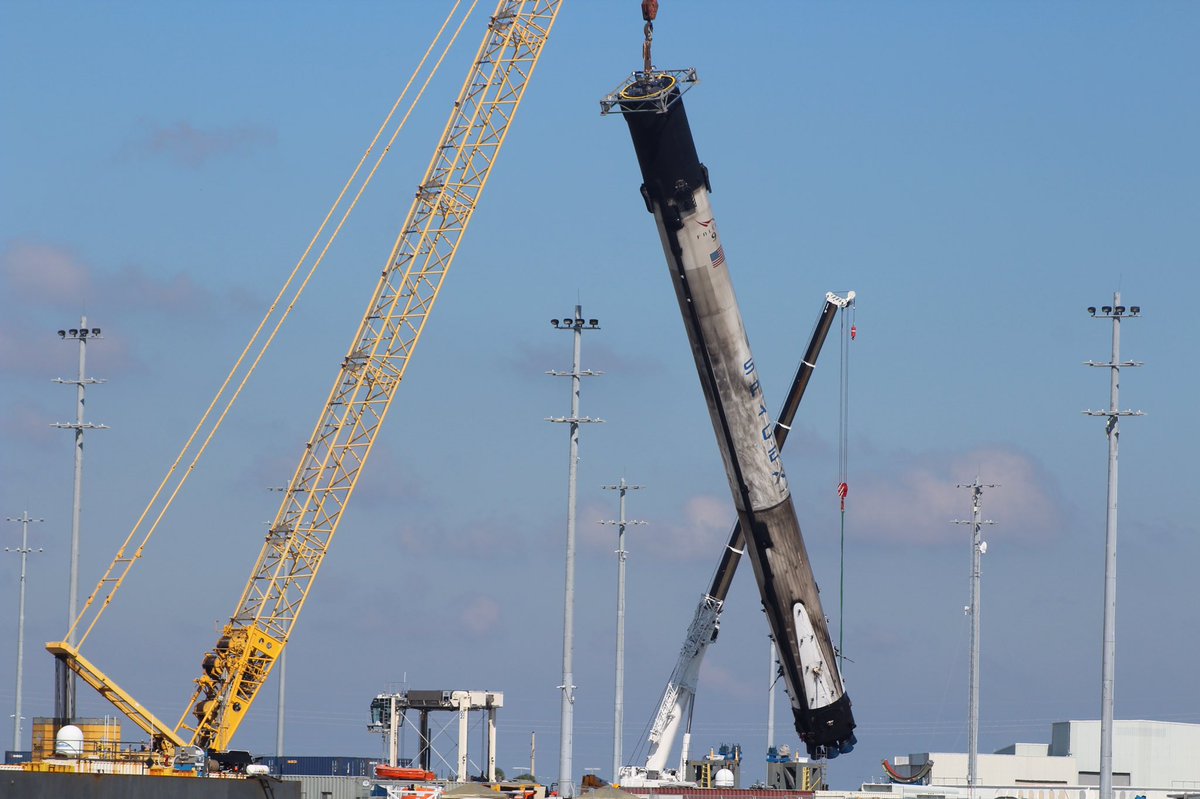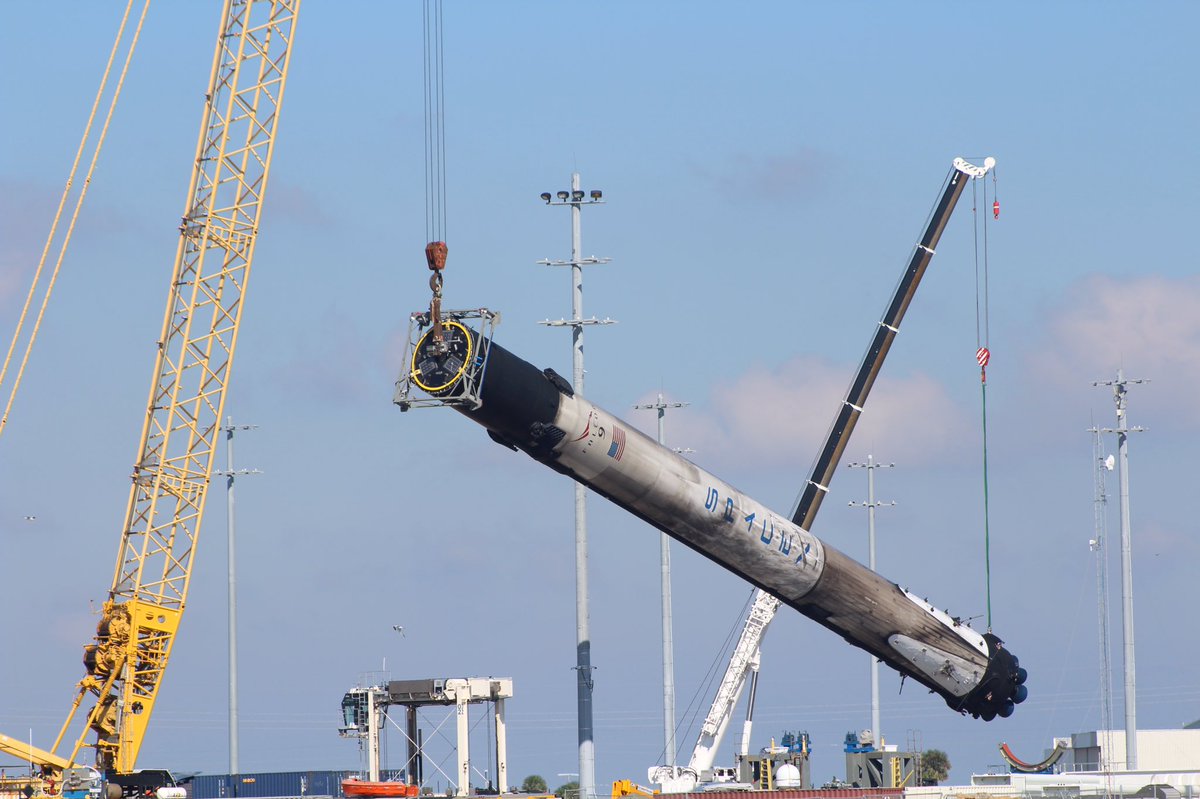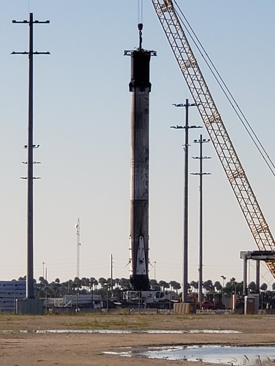 Day 2: the booster was lifted off the drone ship and placed on its stand on land