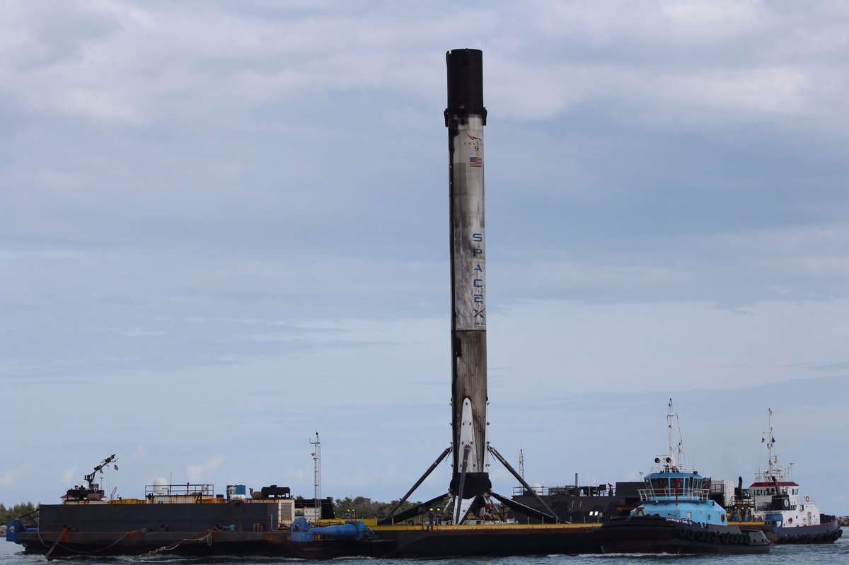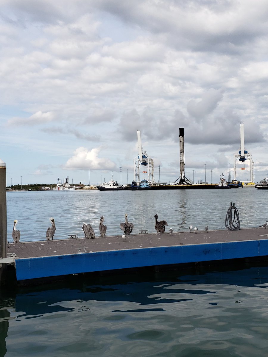 Birds of a feather flock together. The twice flown and landed @SpaceX Falcon 9 first stage booster from #Eshail2 is docking in @PortCanaveral on a beautiful afternoon.