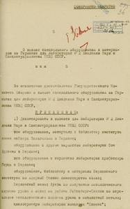 Ванников Б. Л. Поручение П. М. Зернову. [Июнь 1946]