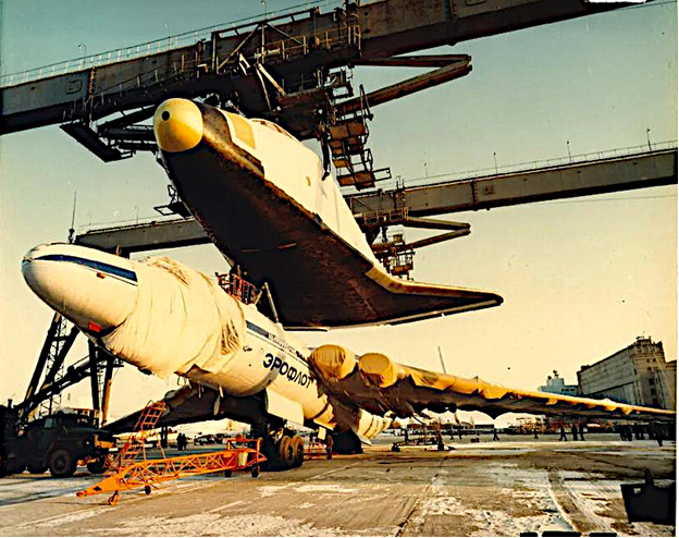 На снимке ниже погрузка «Бурана» на самолет-носитель ВМ-Т «Атлант» (модификация стратегического бомбардировщика 3М/М-4): :