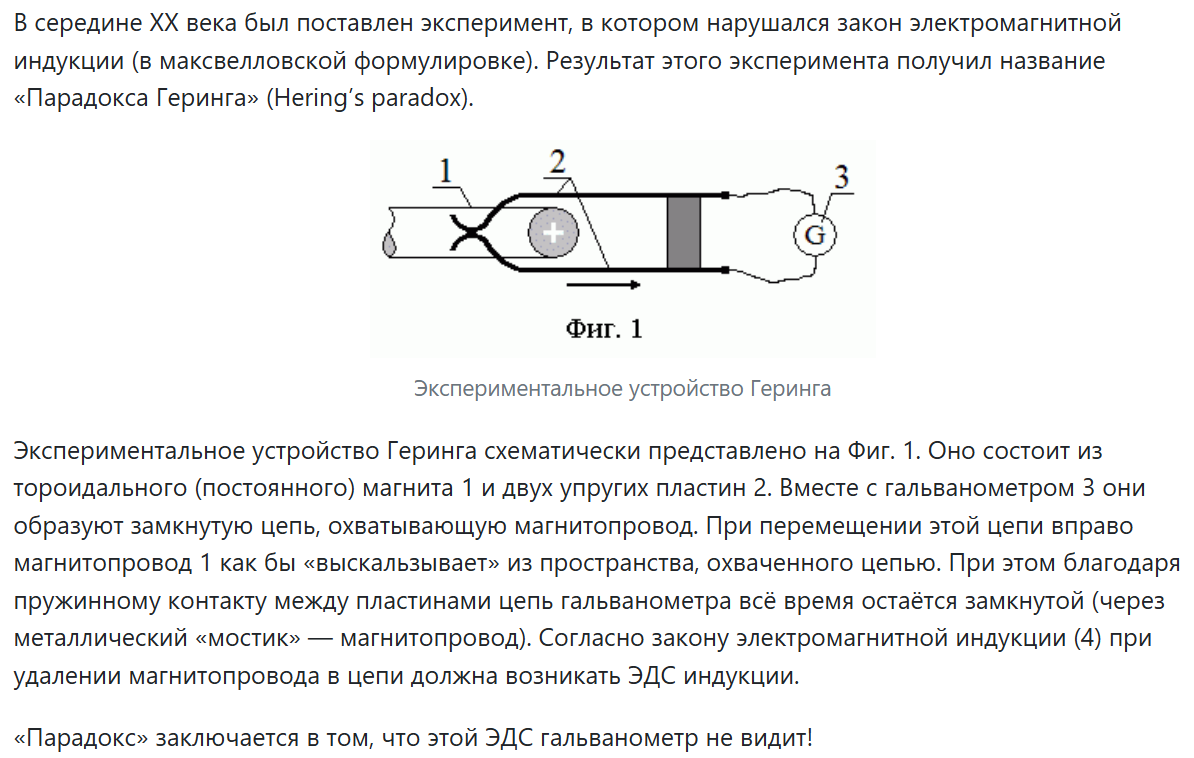 Электромагнитная индукция - это разностороннее явление, сопровождаемое многими парадоксами. Вот, к примеру, парадокс Геринга: