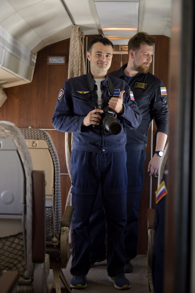 Арутюн Кивирян отрабатывал полученные ранее навыки ориентации и передвижения в условиях невесомости и передвижения в скафандре «Сокол» с использованием различных средств и элементов фиксации. Надеть скафандр нелегко и на Земле, а в воздухе, при отсутствии опоры, за полторы минуты (три «горки»), это становится нетривиальной задачей, с которой космонавт-испытатель успешно справился.