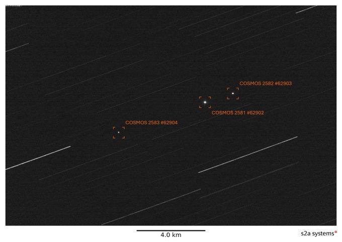 Some impressive RPO maneuvers from COSMOS 2581, COSMOS 2582 and COSMOS 2583 during the last few days.
