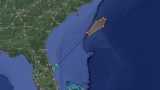 LHA map for #Starlink Group 10-1 from CCSFS SLC-40 NET 08 Jun 00:00 UTC, alternatively 09 to 13 Jun based on issued NOTAM/NOTMARs. Planned booster recovery 618km with estimated fairing recovery ~700km downrange. Stage2 debris reentry south of Australia. http://bit.ly/LHA-38