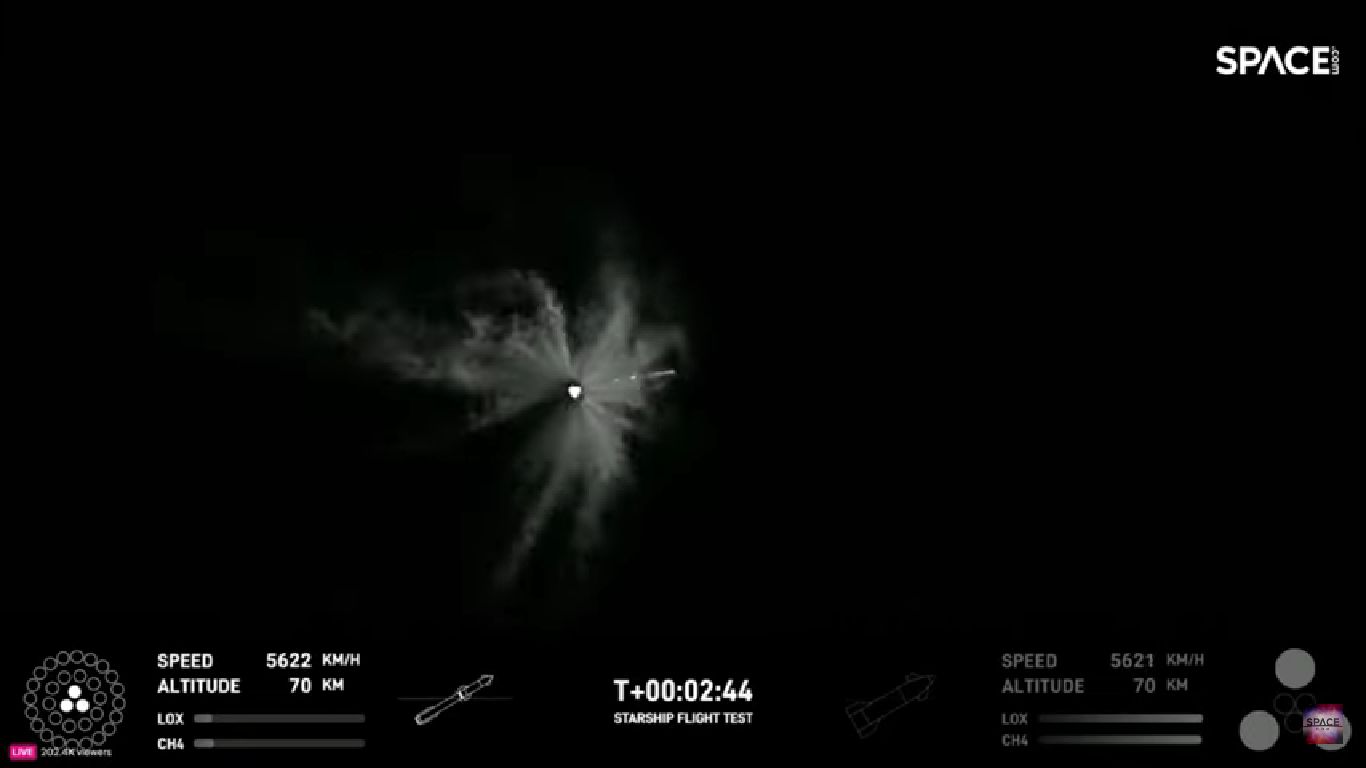 Цитата: Streamflow от 04.04.2025 20:24:40Вот изображение контролируемого сброса газов наддува при IFT-2 из бустера в 2:44 перед бустбэком, когда должны были реализовываться перегрузки, до этого на траектории разгона Старшипом не испытываемые: