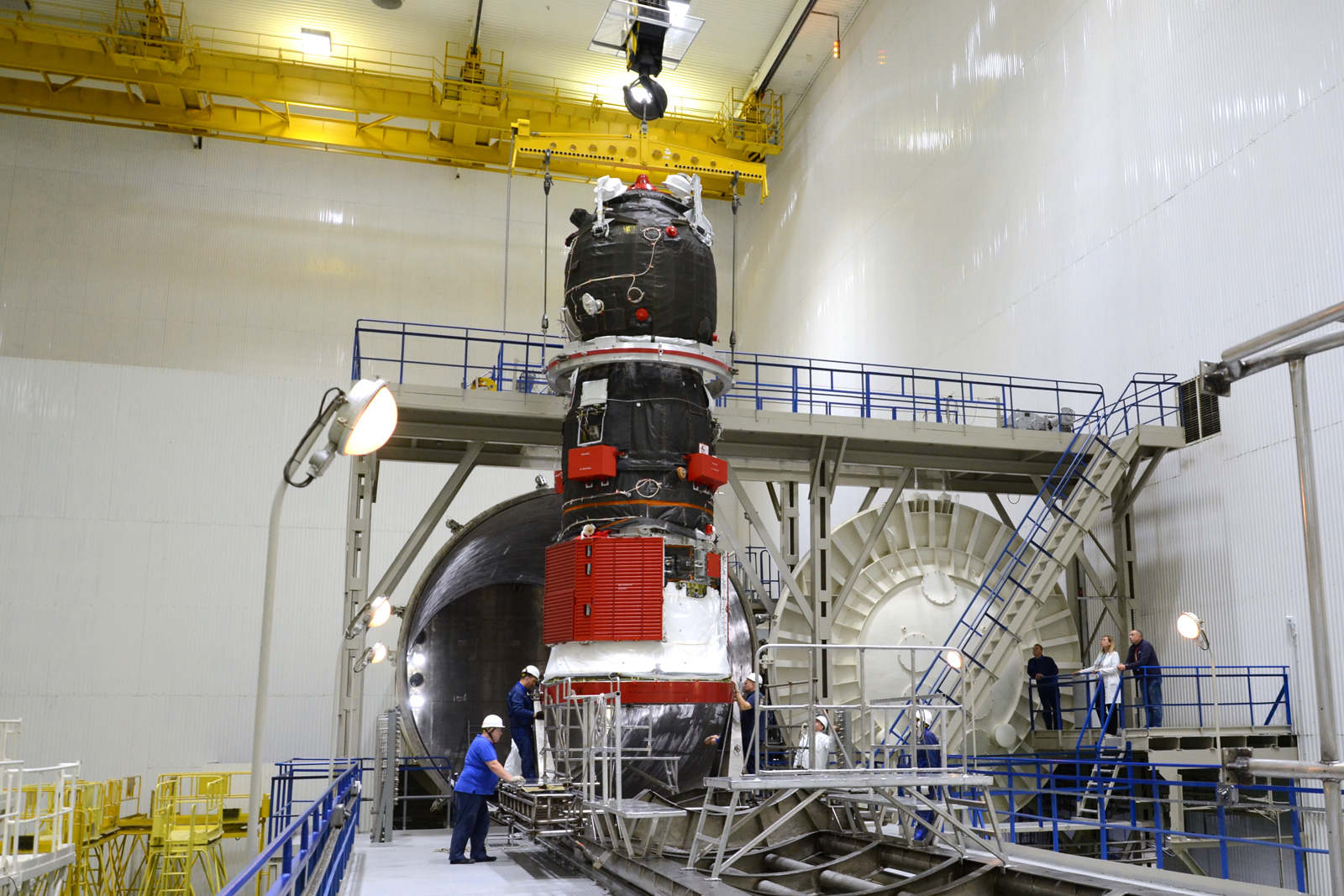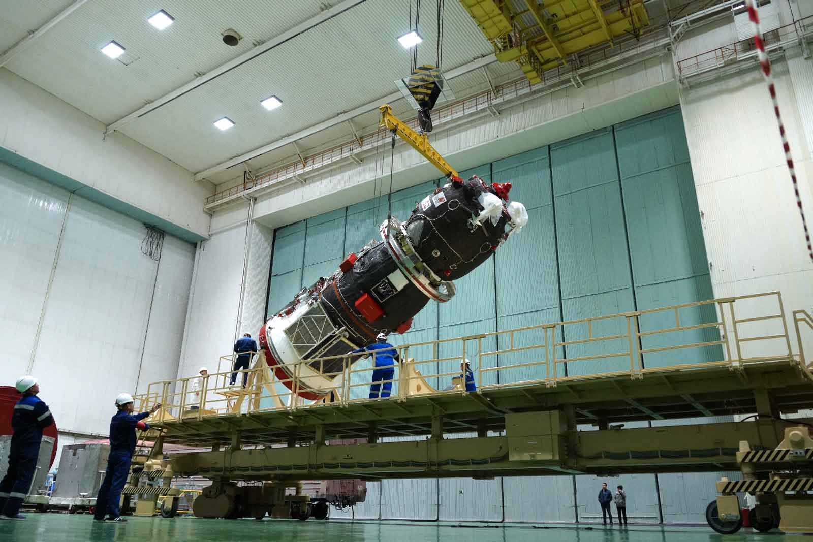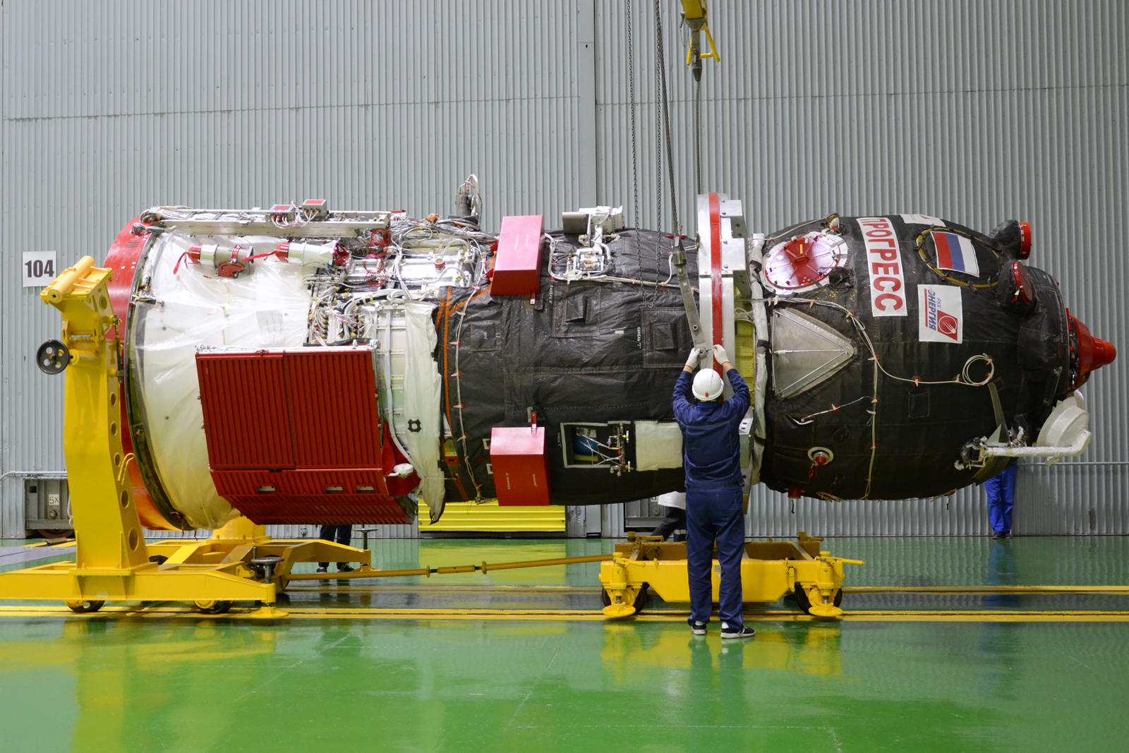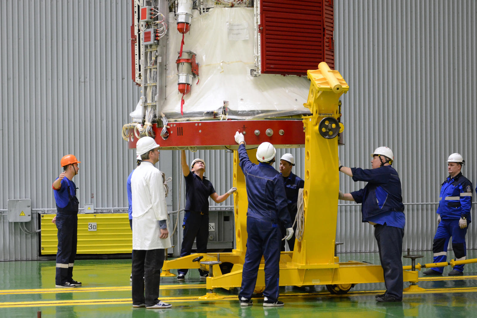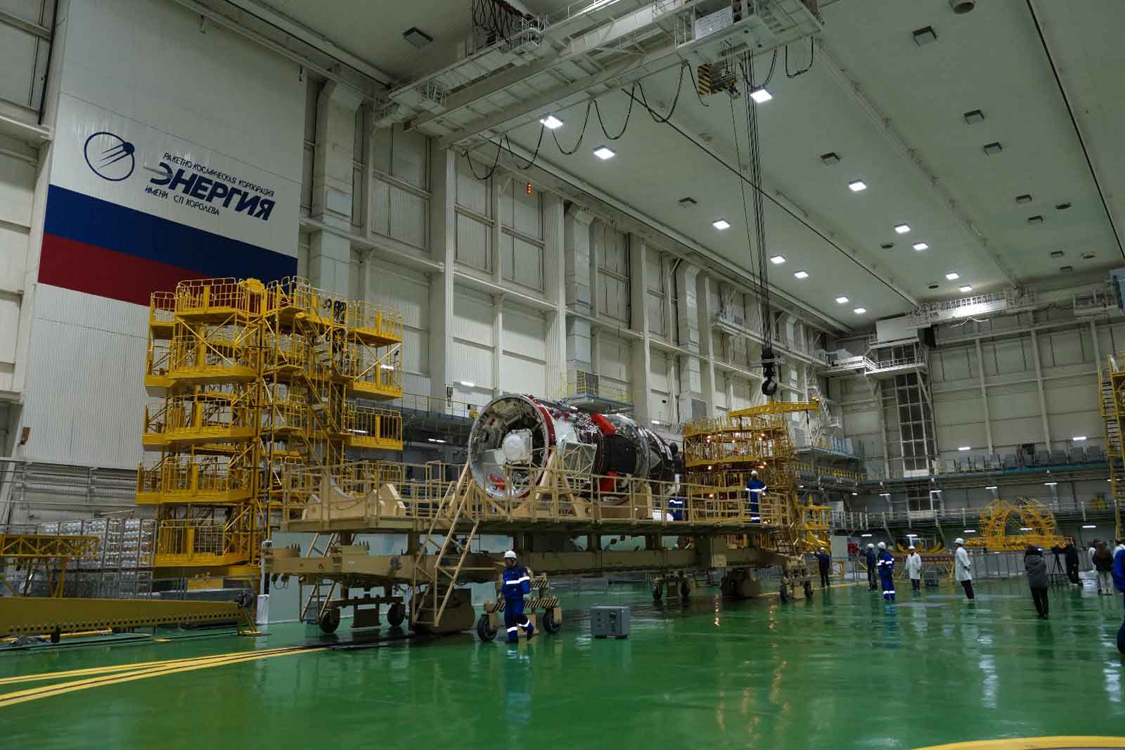 В настоящий момент идут работы по выгрузке и установке корабля на рабочее место для проведения процедуры приемки для дальнейшей подготовки к запуску согласно графику работ.
