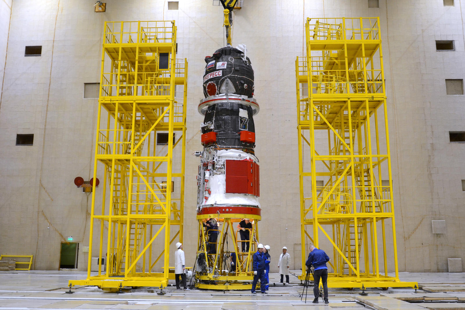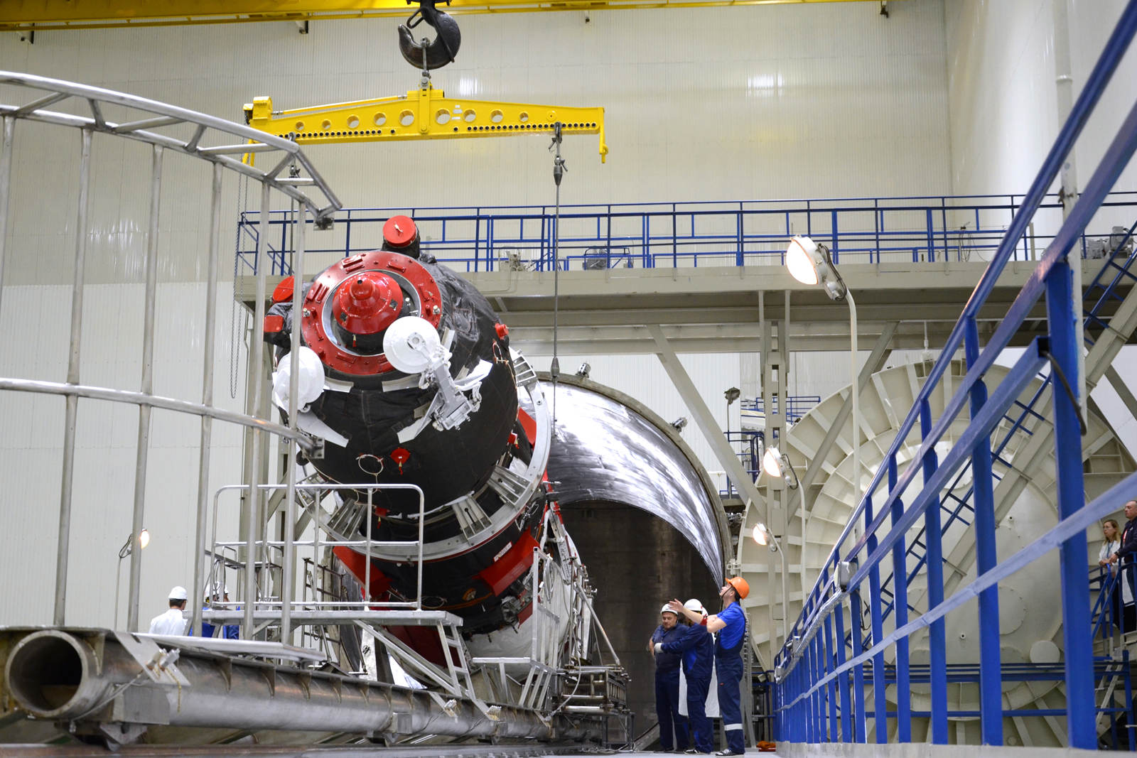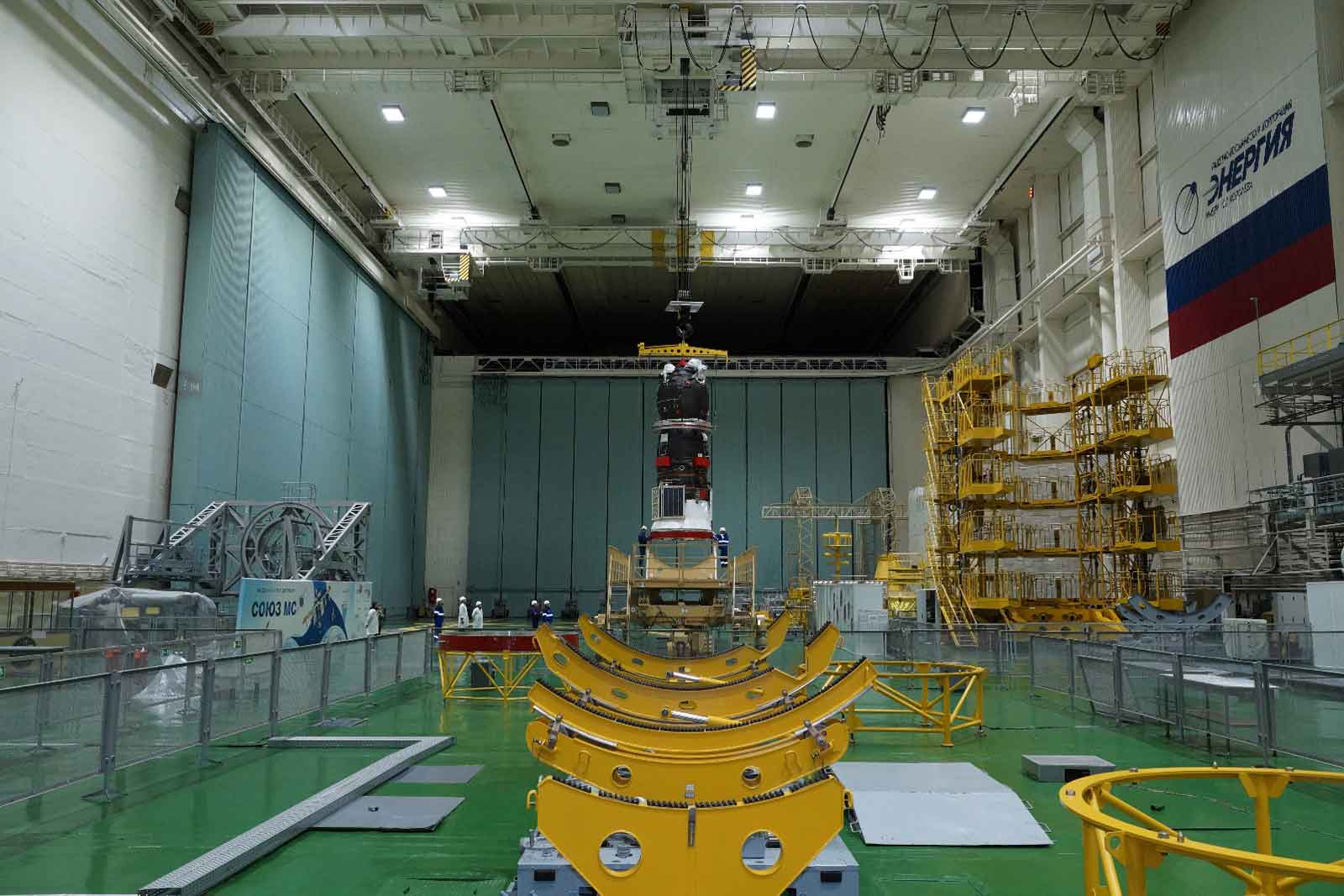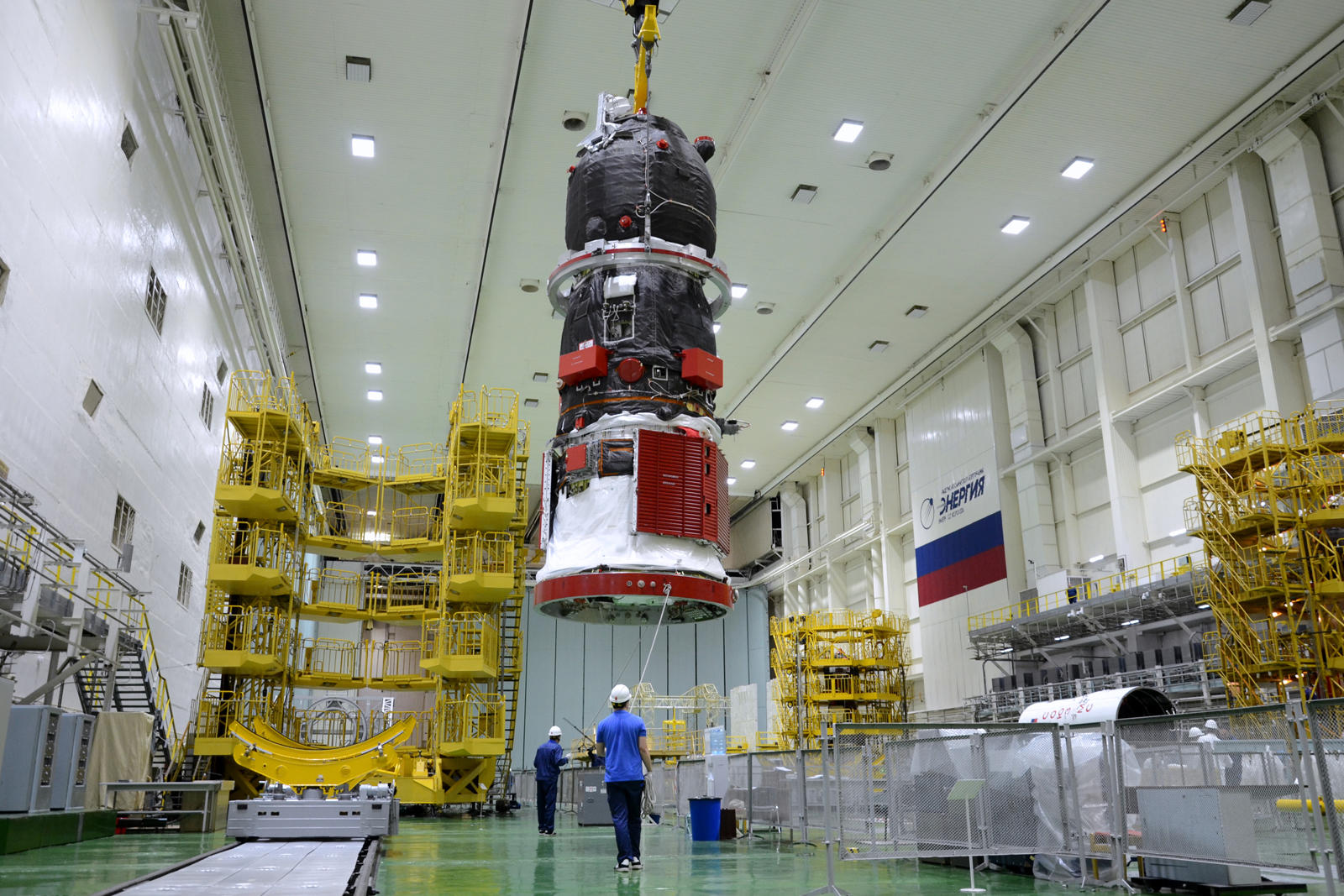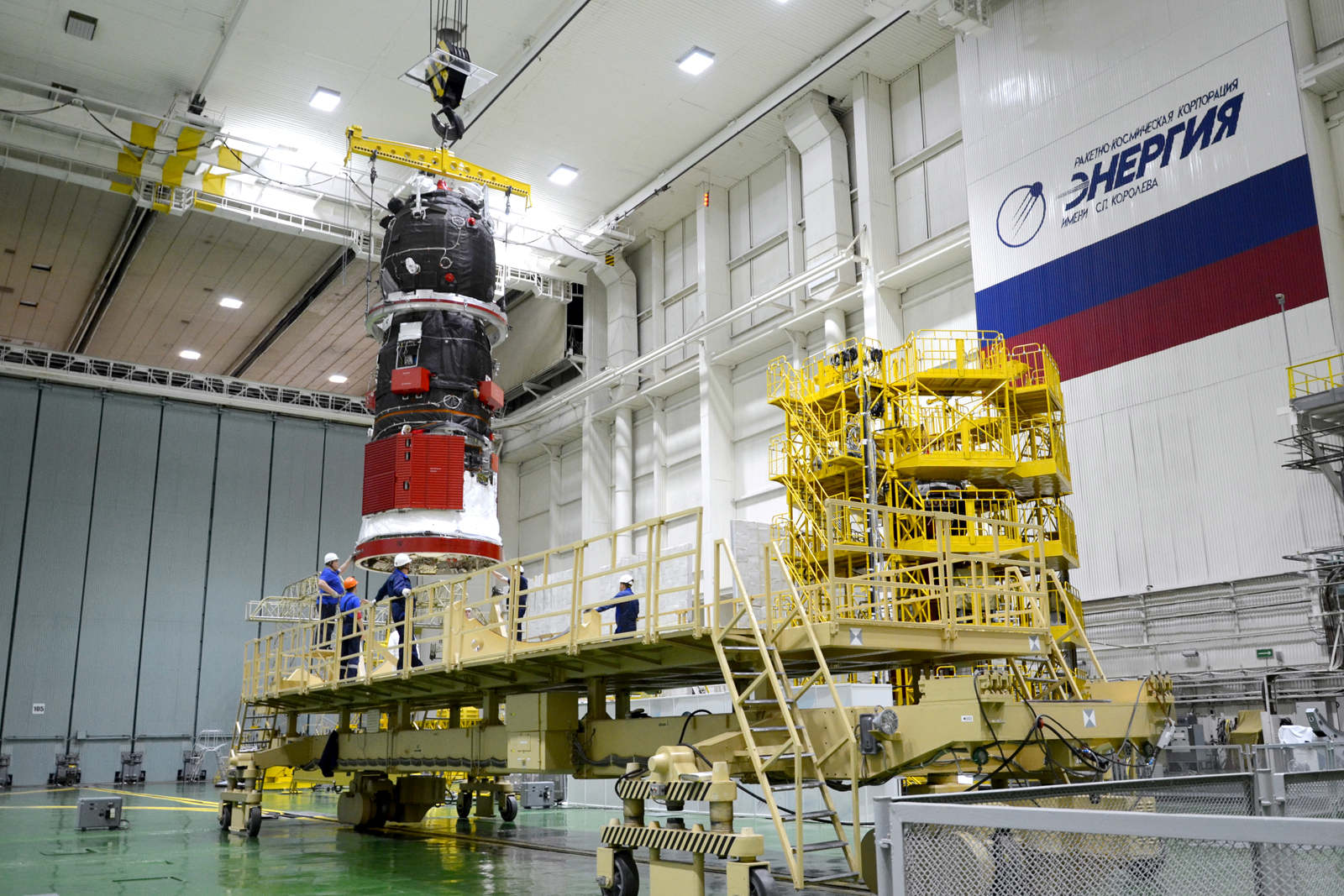 В настоящий момент идут работы по выгрузке и установке корабля на рабочее место для проведения процедуры приемки для дальнейшей подготовки к запуску согласно графику работ.