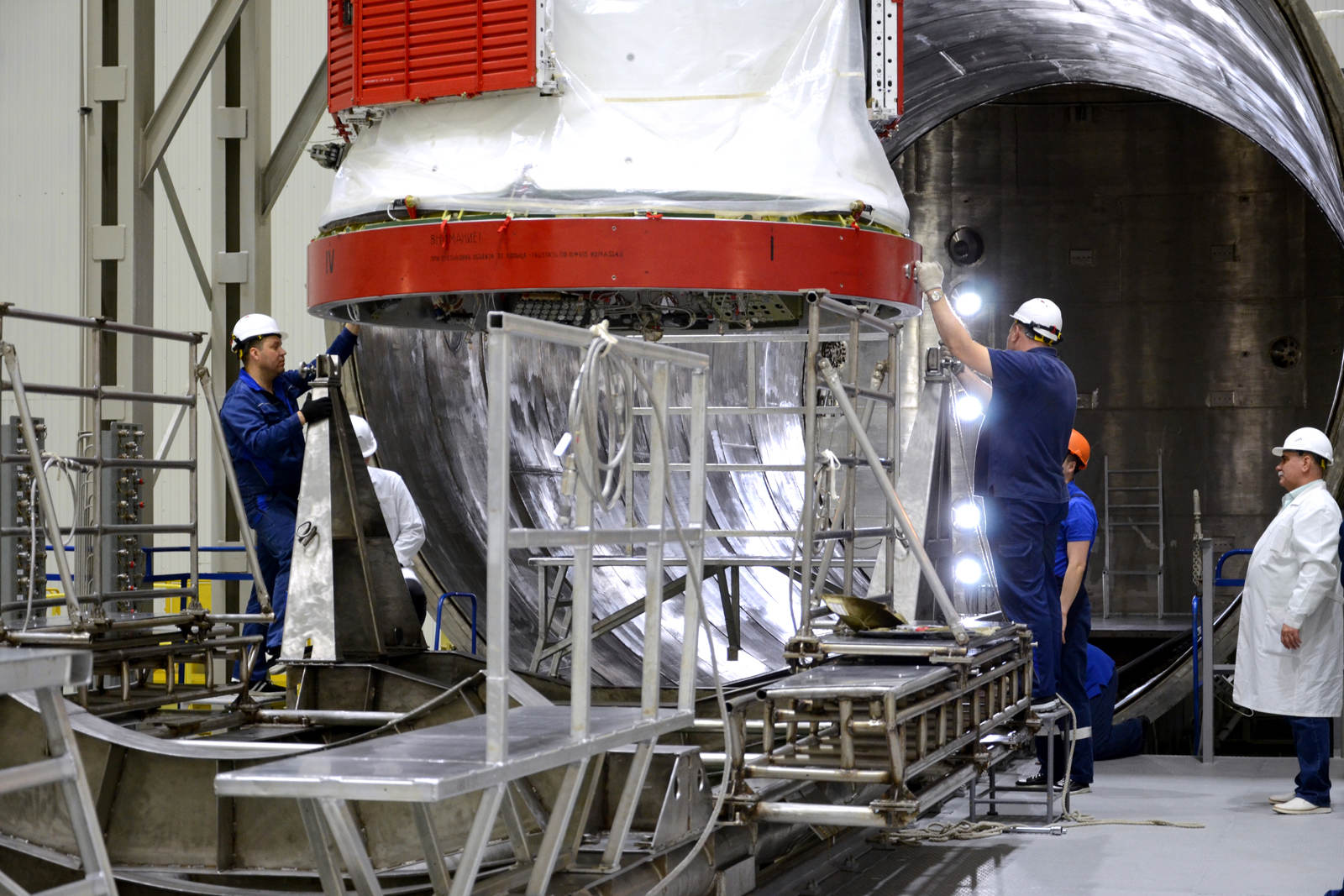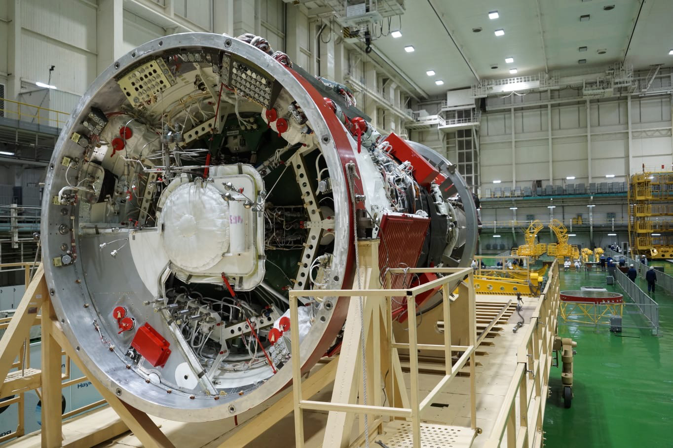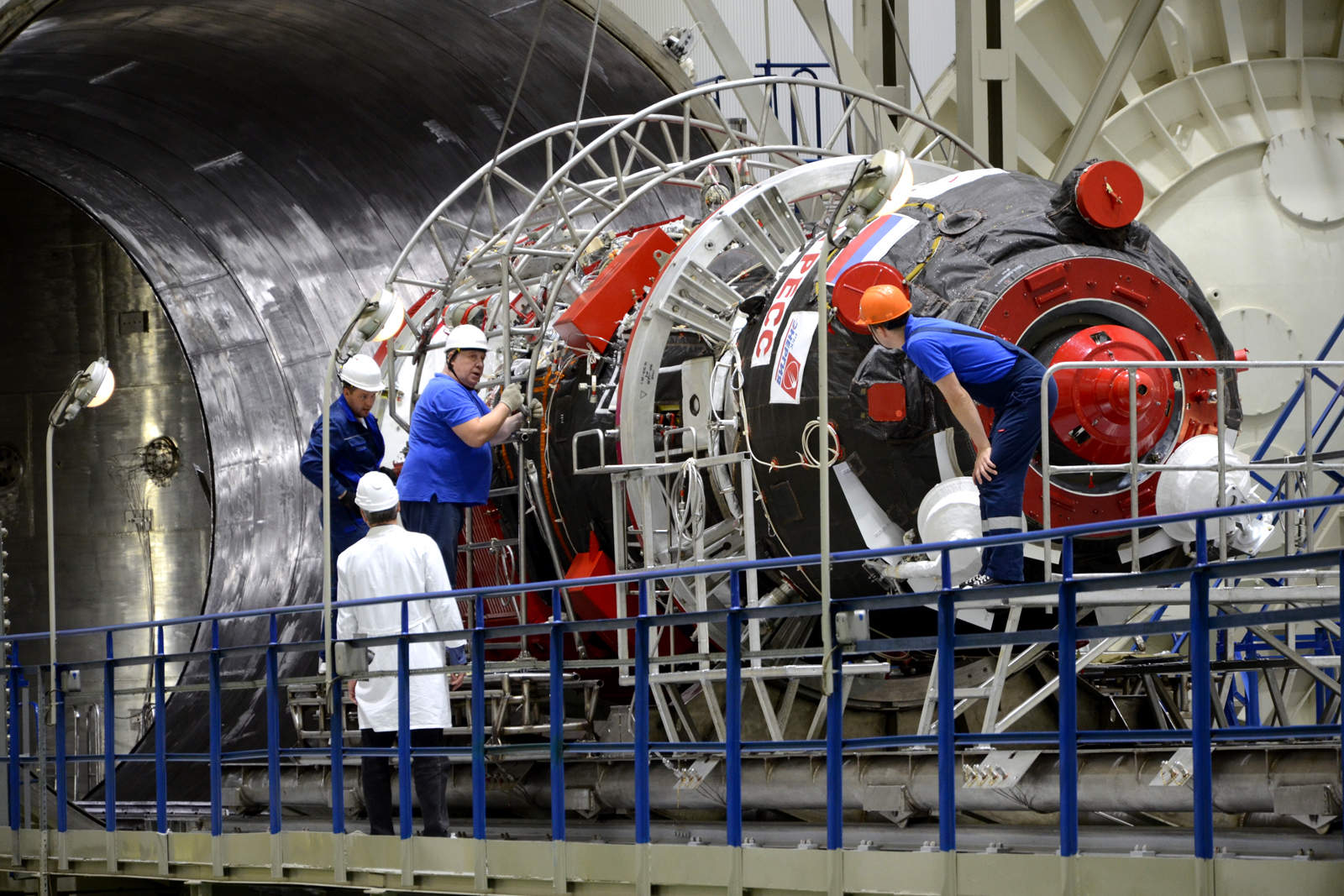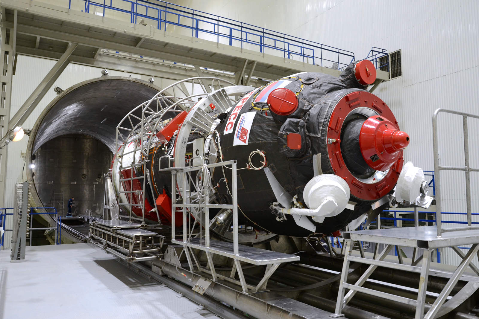На космодроме Байконур завершились испытания на герметичность транспортного грузового корабля «Прогресс МС-33» в вакуумной камере монтажно-испытательного корпуса площадки 254.