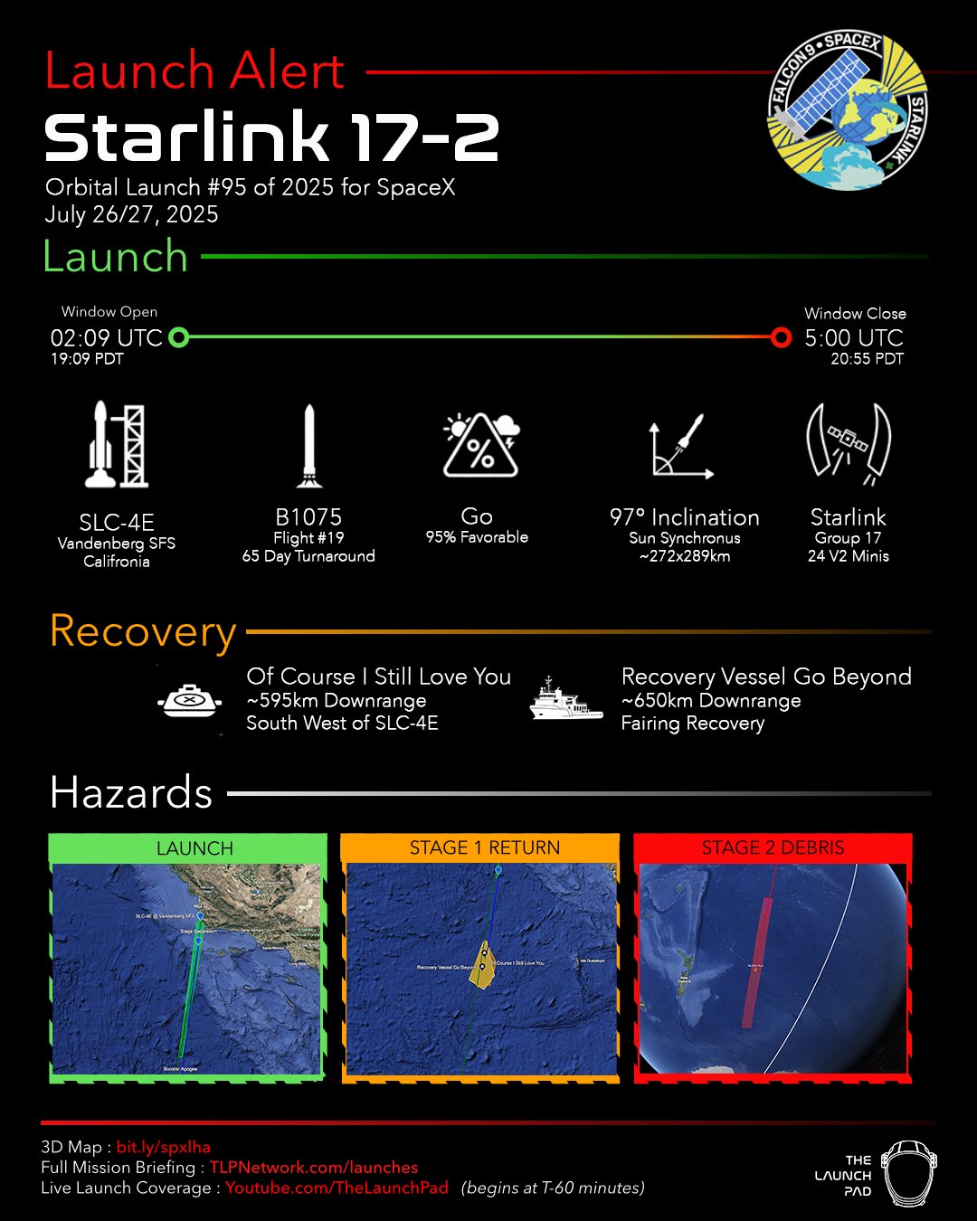 Until then, check out this graphic and hazards for the @SpaceX @Starlink 17-2 launch tonight from @SLDelta30 !