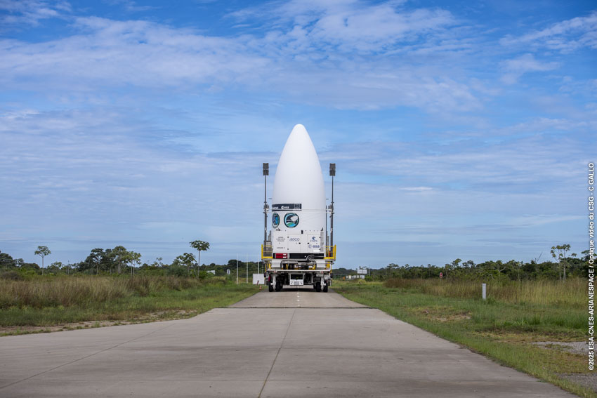The payload fairing housing #MetopSGA1 has been moved to the Ariane 6 launcher.