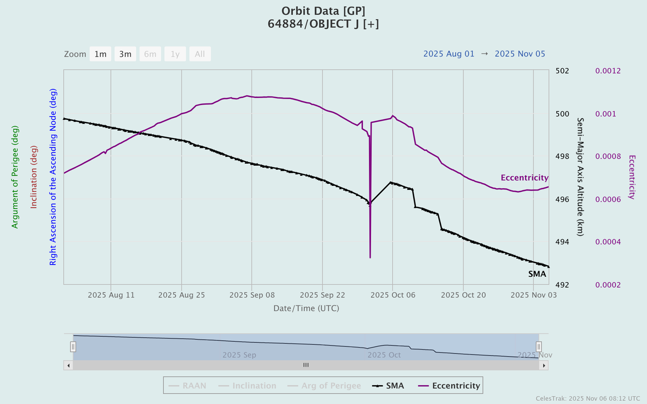 CSTP-1.2, который находится на более низкой орбите (485x515 км), проводил несколько небольших коррекций орбиты еще в прошлом месяце.