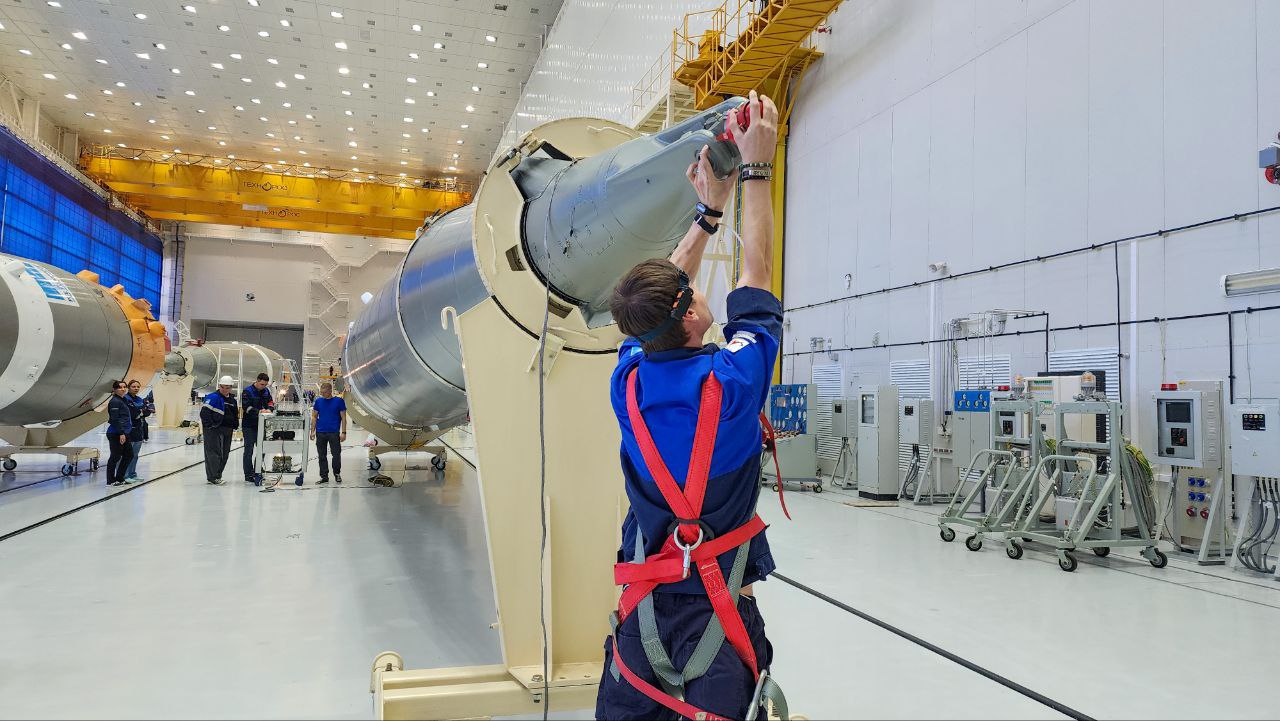 Работы ведутся с боковыми и центральными блоками ракеты-носителя для дальнейшей сборки в «пакет» на унифицированном техническом комплексе космодрома Восточный в рамках запуска двух космических аппаратов «Аист-2Т» с попутной полезной нагрузкой.