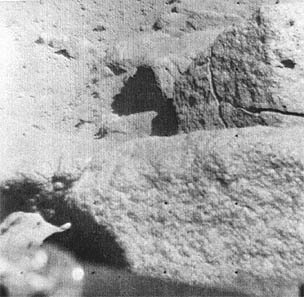 The attention-commanding photograph at the right was among those that Surveyor Vll took of lunar rocks of special geological interest.