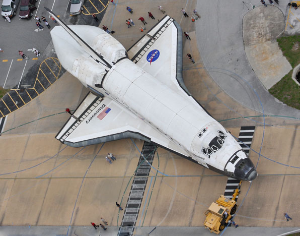 Discovery flew back to the Florida spaceport last March 9 after the successful STS-133 voyage that delivered a bonus module to the International Space Station to serve as a float-in closet of sorts.