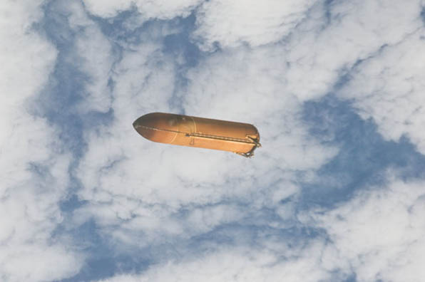 У меня возник такой вопрос: было ли видно с борта шаттла хоть раз сгорание топливного бака в атмосфере после его отделения? До какого времени астронавты экипажа шаттла вели съемку падения топливного бака?