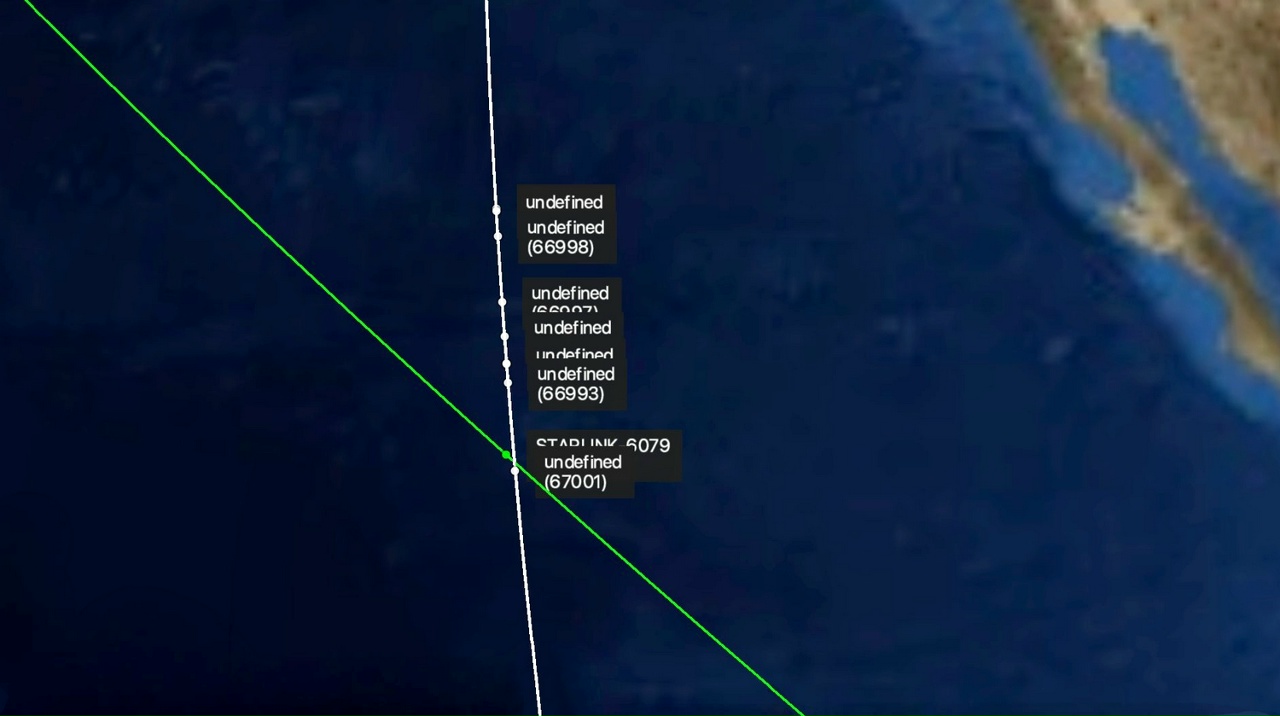Судя по всему, опасное сближение имело место 12 декабря в 9:42 МСК над Тихим океаном у полуострова Калифорния, оно произошло через ~50 часов после запуска миссии CAS Space. Спутник Starlink-6079 был запущен 29 марта 2023 года в рамках миссии Starlink-5.10 из Флориды.