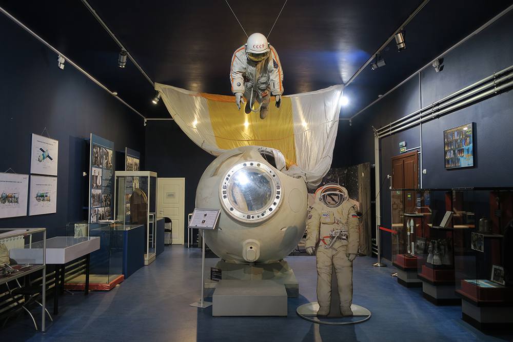 В Петропавловской крепости есть Музей космонавтики и ракетной техники имени В. П. Глушко - в нем выставлен реальный спускаемый аппарат КК "Союз-16", а перед входом (на улице) стоит капсула спутника оптической разведки "Янтарь", корни которого уходят к КК "Восток".