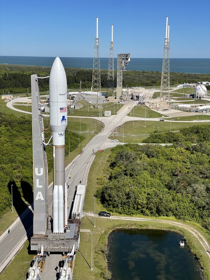 The United Launch Alliance Atlas V rocket is back atop Space Launch Complex-41 and poised for liftoff Thursday night to deliver the commercial ViaSat-3 F2 ultra-high-capacity broadband satellite into space.