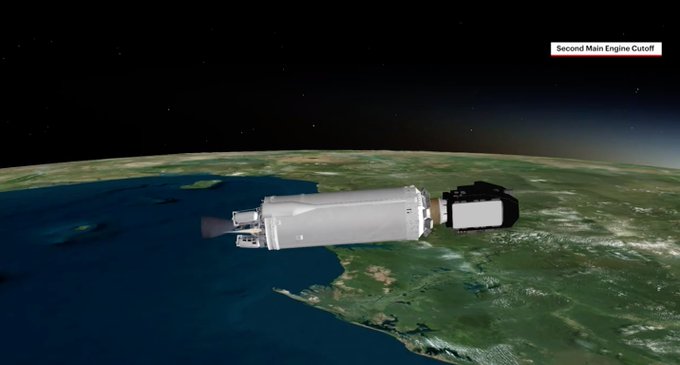 Main engine cutoff 2, or MECO 2, is confirmed for the Centaur upper stage. The Atlas V rocket has reached an intermediate geosynchronous transfer orbit for tonight's the ViaSat-3 F2 mission. The rocket will coast in altitude for the next three hours before ignition of the final launch burn to optimize the payload's deployment orbit. http://bit.ly/av_viasat