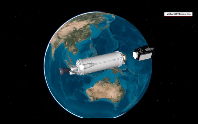 Separation confirmed! The United Launch Alliance Atlas V rocket's Centaur upper stage has deployed the powerhouse ViaSat-3 Flight 2 spacecraft for broadband connectivity to users on land, at sea or in the air, completing today's launch for operator @viasat. http://bit.ly/av_viasat