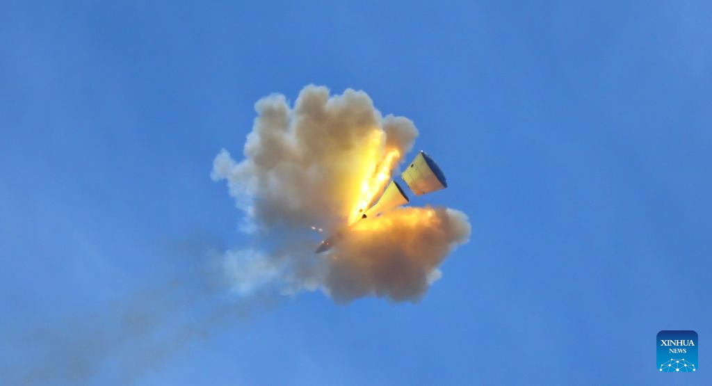 JIUQUAN, June 17 (Xinhua) -- China successfully conducted an escape flight test on its new-generation manned spacecraft Mengzhou at zero altitude on Tuesday, marking an important step forward in its manned lunar exploration program.
