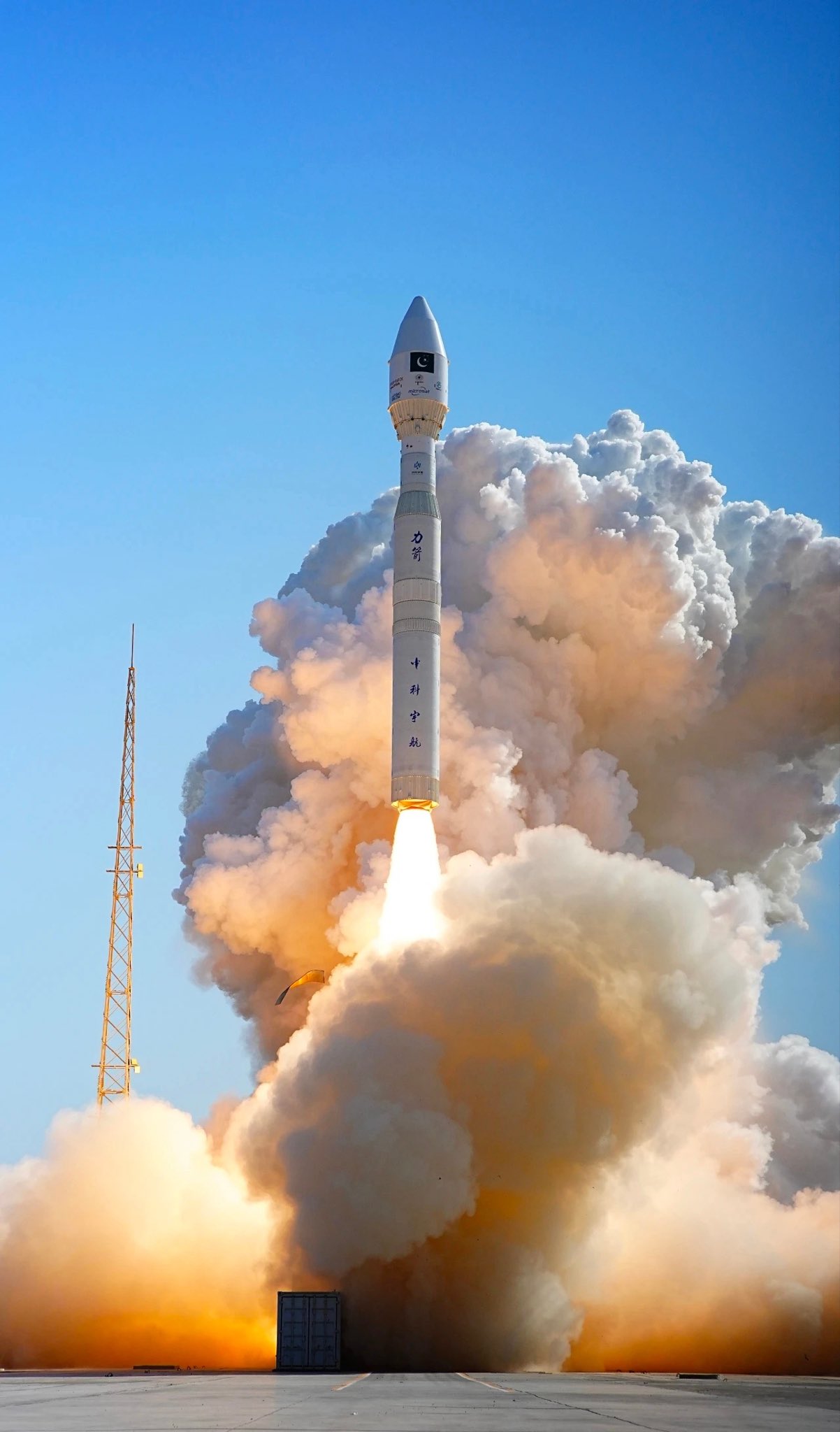 Ракета-носитель стартовала в 11:33 по пекинскому времени из экспериментальной зоны коммерческих аэрокосмических инноваций Дунфэн на северо-западе Китая и успешно вывела пакистанский спутник дистанционного зондирования 02, а также спутники Чжункэ 03 и 04 на запланированные орбиты.