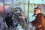 Тренировка в условиях гидроневесомости продолжалась около пяти часов. Ближе к финалу космонавты отработали действия в случае нештатной ситуации: обнаружив негерметичность в малом исследовательском модуле «Поиск», они выполнили нештатное шлюзование – уход в переходный отсек служебного модуля «Звезда».