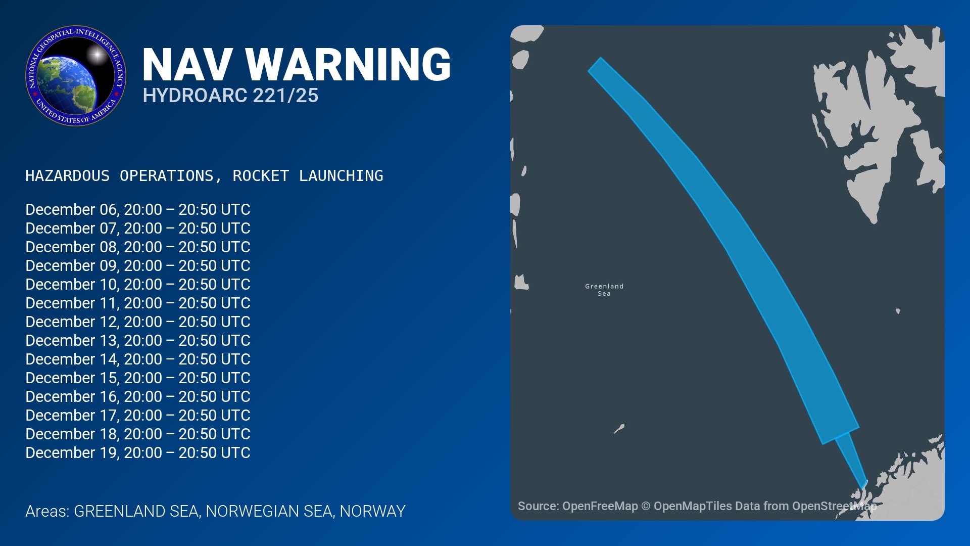 CyBEEsat, FRAMSat 1, MSAE-OTTERS, TOM 1, TOM 2, TOM 3, TRISAT-S – Spectrum – Andøya Spaceport – 06.12.2025 20:00 UTC