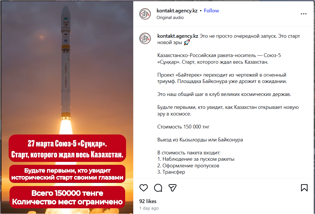 Цитировать27 марта 2026 года планируется запуск ракеты-носителя «Союз-5»