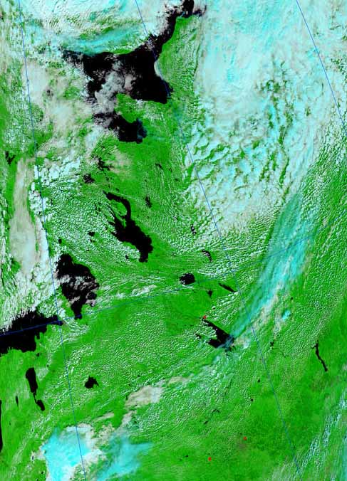 Сохранится ли вот этот просвет (относительный, конечно, есть облака) по оси ППП (Питер-Петрозаводск-Плесецк) до завтрашнего, 25 июля,  вечера? Между Москвой (серое пятно с красным фонариком внизу) и Плесецком - дуга облачная, но не слишком плотная, может рассосется?