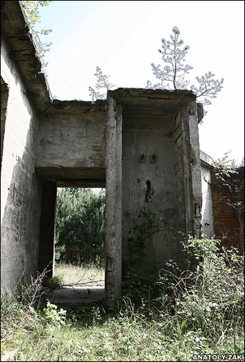 Недалеко от города Куммерсдорф, на пересечении этой дороги с заброшенной железнодорожной линией, находится комплекс старых коричневых зданий, очень похожих на военные казармы.
