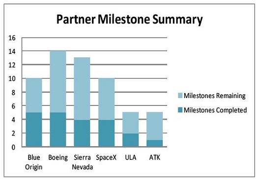 CCDev milestone progress as of Oct. 21, 2011. (Credit: NASA)