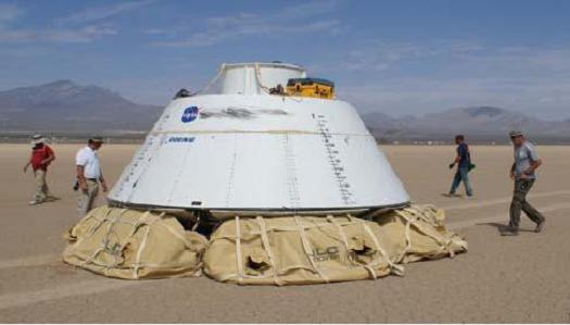 Together with their Bigelow Aerospace teammates, Boeing successfully completed a series of drop tests in the Mojave Desert to measure the performance of prototype landing airbags for their CST-100 commercial crew spacecraft. When returning from space, the CST-100 will descend on three parachutes. To further cushion the land-based landings, the capsule's heat shield will drop away at about 5,000 feet and six airbags will inflate.