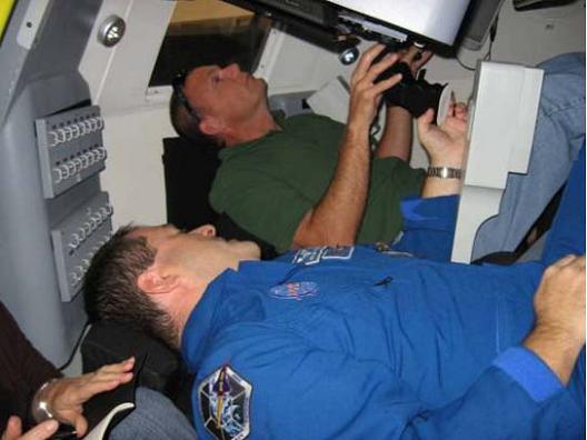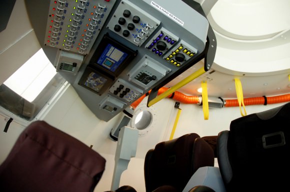 NASA crew members evaluating the CST100 mockup. (Credit: NASA)