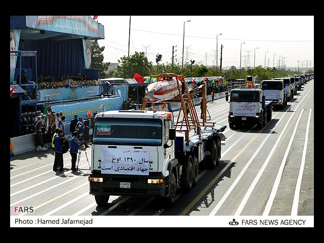 Помимо этого, на параде была представлена новая модификация танка "Зольфагар", новая автоматическая пушка, способная, по данным "Фарс", выпускать 6.000 снарядов в минуту, а также новые артиллерийские системы и система ПВО "Мерсад", использующая упоминавшиеся ракеты "Шахин".