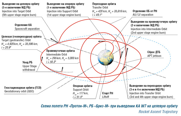 Запуск космического аппарата (КА) W7 должен стать восьмым пуском ракеты «Протон» в 2009 году и 349-м стартом в ее летной истории.