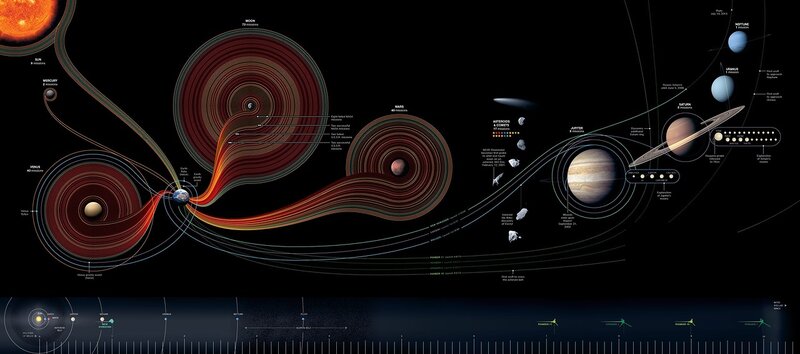 National Geographic представил полувековую историю исследований различных объектов нашей планетной системы вот такиким образом -