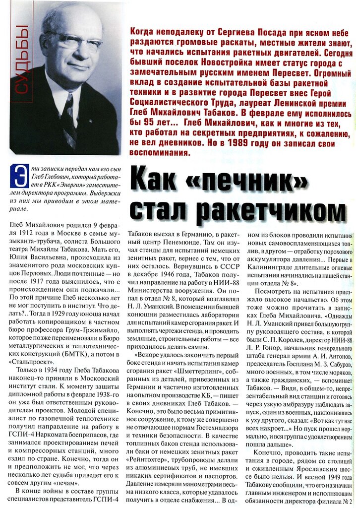 9 февраля исполняется 100 лет директору НИИ-229 в 1958-1963 гг Табакову Глебу Михайловичу, которому за участие в работе по запуску человека в космос присвоено звание Героя Социалистического Труда. Будут ли в Пересвете какие-то мероприятия, посвященные этому юбилею?