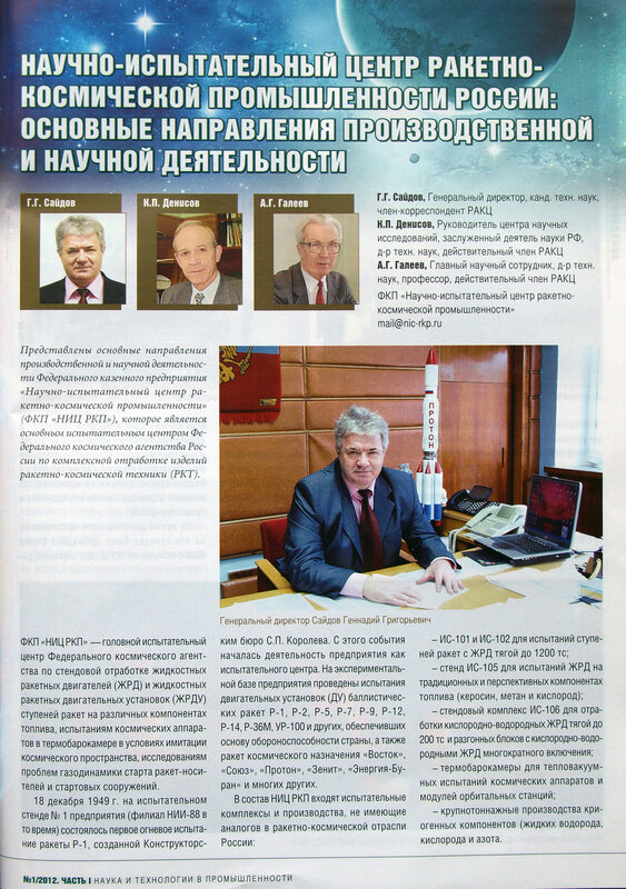 Геннадий САЙДОВ, генеральный директор федерального казенного предприятия "Научно-испытательный центр ракетно-космической промышленности"