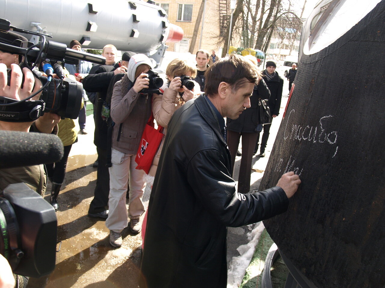 А накануне Дня космонавтики в музее ФКП "НИЦ РКП" появился новый экспонат - спускаемый аппарат корабля «Союз ТМ». Один из тех, кому приходилось летать на этом аппарате - российский космонавт Юрий Маленченко. Он приехал в Пересвет, где ему устроили экскурсию по испытательным стендам "НИЦ РКП".